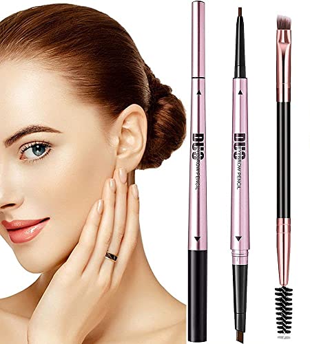 SLZZ 2 matite per sopracciglia, 3D a lunga durata, impermeabile, con doppia estremità, kit professionale per migliorare le sopracciglia con set di pennelli per sopracciglia (Marrone scuro)