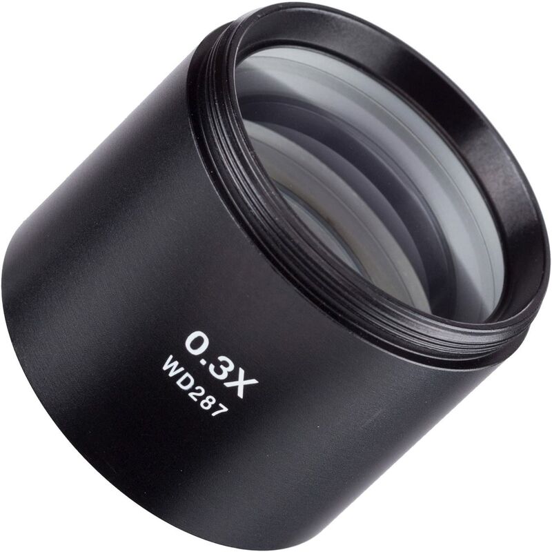 L'obiettivo di Barlow 0,3x raddoppia la distanza di lavoro e la vista sul campo degli stereomicroscopi SM e/o SW, dimezzando la potenza di ingrandimento e raddoppiando la distanza di lavoro e la vista sul campo dei microscopi. Dimensioni di montaggio: 48 mm di diametro.