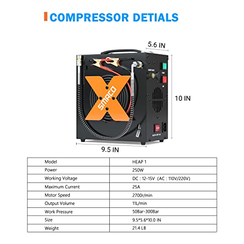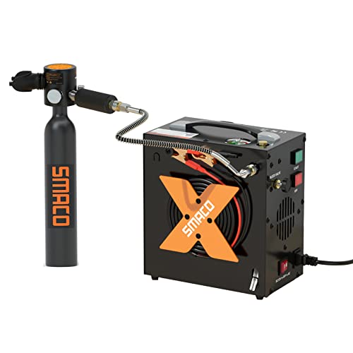 【Servizio clienti professionale】: Riceverete: mini bombola subacquea SMACO (la valvola di rilascio è separata dalla bombola, da collegare saldamente prima dell'uso), Compressori d'aria, manuale di i