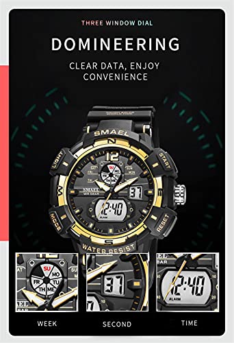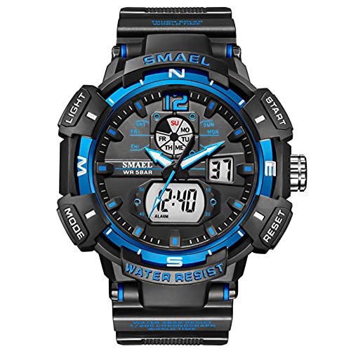 SMAEL Digitale Orologio Per Uomo Orologi Da Uomo Sportivo Impermeabile Militare Orologio Con Sveglia Cronometro All' Aria Aperta Orologio Analogico,Black blue