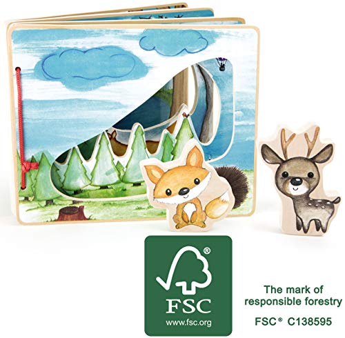 Small foot 10073 Libro illustrato "Waldlandschaft" in legno, il primo libro illustrato per i più piccoli, a partire da 12 mesi.