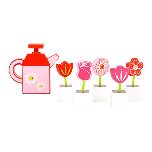 Small Foot- Set di Fiori con innaffiatoio, Legno Certificato FSC 100%, Gioco di Ruolo Attivo Giocattoli, Multicolore, 12048