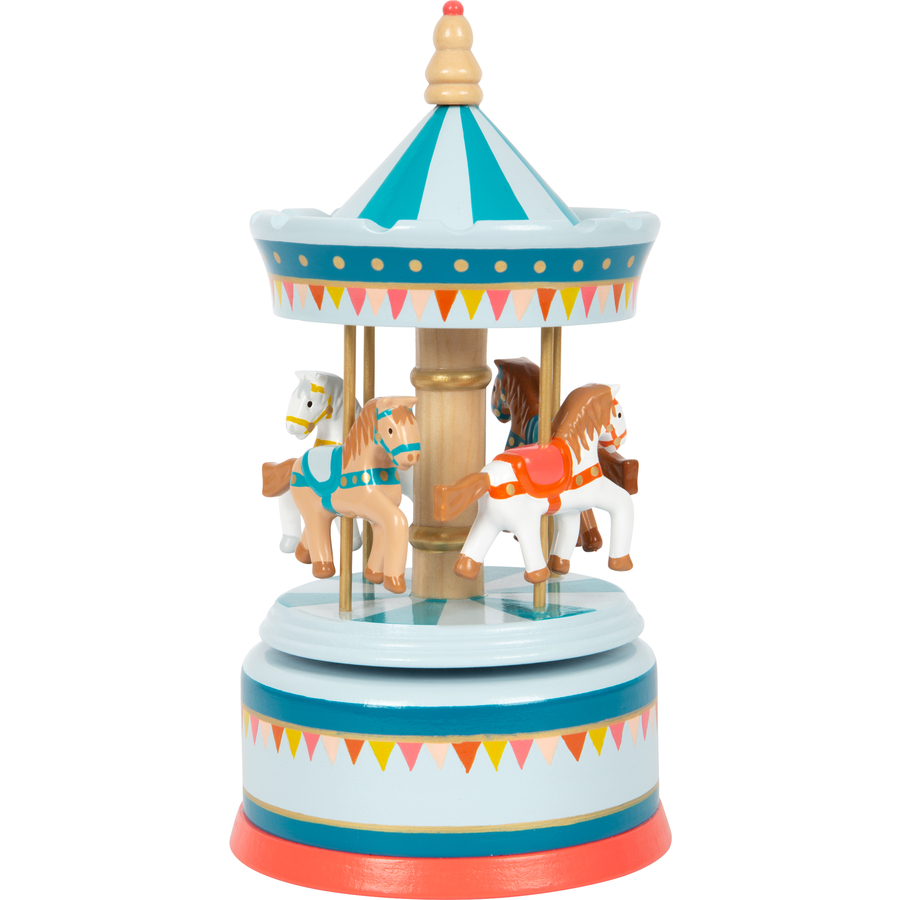 Dettagli del prodotto: Circo o luna park? Questo carillon combina entrambe le cose! Con il suo classico aspetto da giostra, accompagna dolcemente i bambini a dormire con l'incantevole melodia Für Elise di Beethoven, mentre i quattro cavalli in legno, dal design accattivante, girano dolcemente in cerchio al suono della musica. Il carillon può essere azionato autonomamente dai bambini con un semplice movimento di rotazione e, grazie alle sue forme dettagliate e tridimensionali, offre numerose possibilità di sentire e scoprire. Golden e L'alto light s in combinazione con i dettagli in legno a vista, i colori a contrasto e gli elementi di design modern e fanno di questo carillon classico un'attrazione speciale nella stanza dei bambini. Dimensioni e materiale: Misure (altezza): 20 cm Dimensioni (diametro): 11 cm Materiale: legno