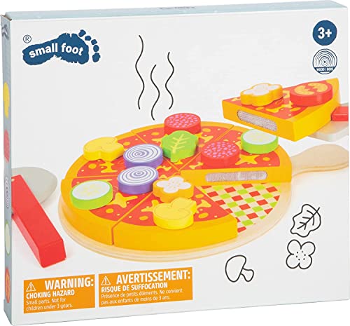 Set di giochi vari con sei pezzi di pizza di grandi dimensioni, taglierina, sollevatore, vassoio e dodici guarnizioni colorate.