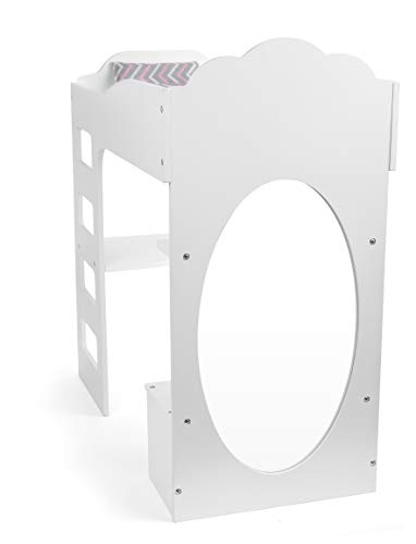 Sul lato esterno del letto a soppalco si trova un grande specchio ovale in cui i genitori delle bambole possono guardarsi