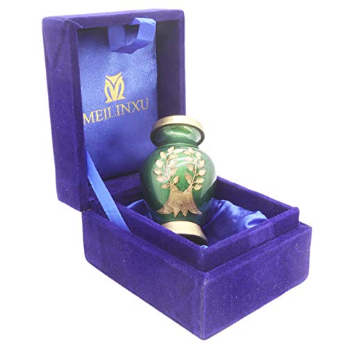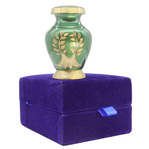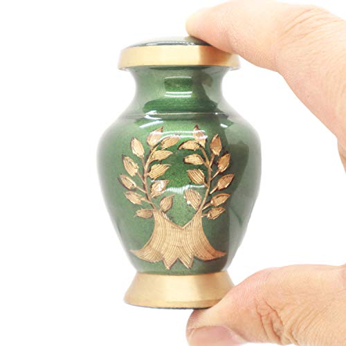Small urna per Ceneri Keepsake by Funeral Mini urna per Ceneri per Adulti - urna in Ottone e inciso a Mano - Display Burial Urn at Home or Office (Aria Albero della Vita Verde, Baby urna