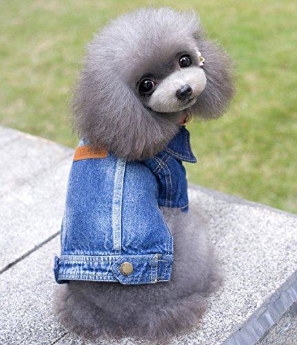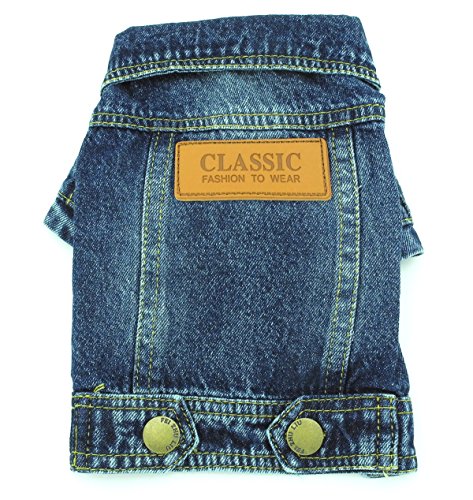 SMALLLEE_LUCKY_STORE Pet Small Dog Cat Clothes Classic Denim Jacket Coat Male Costume Blue M