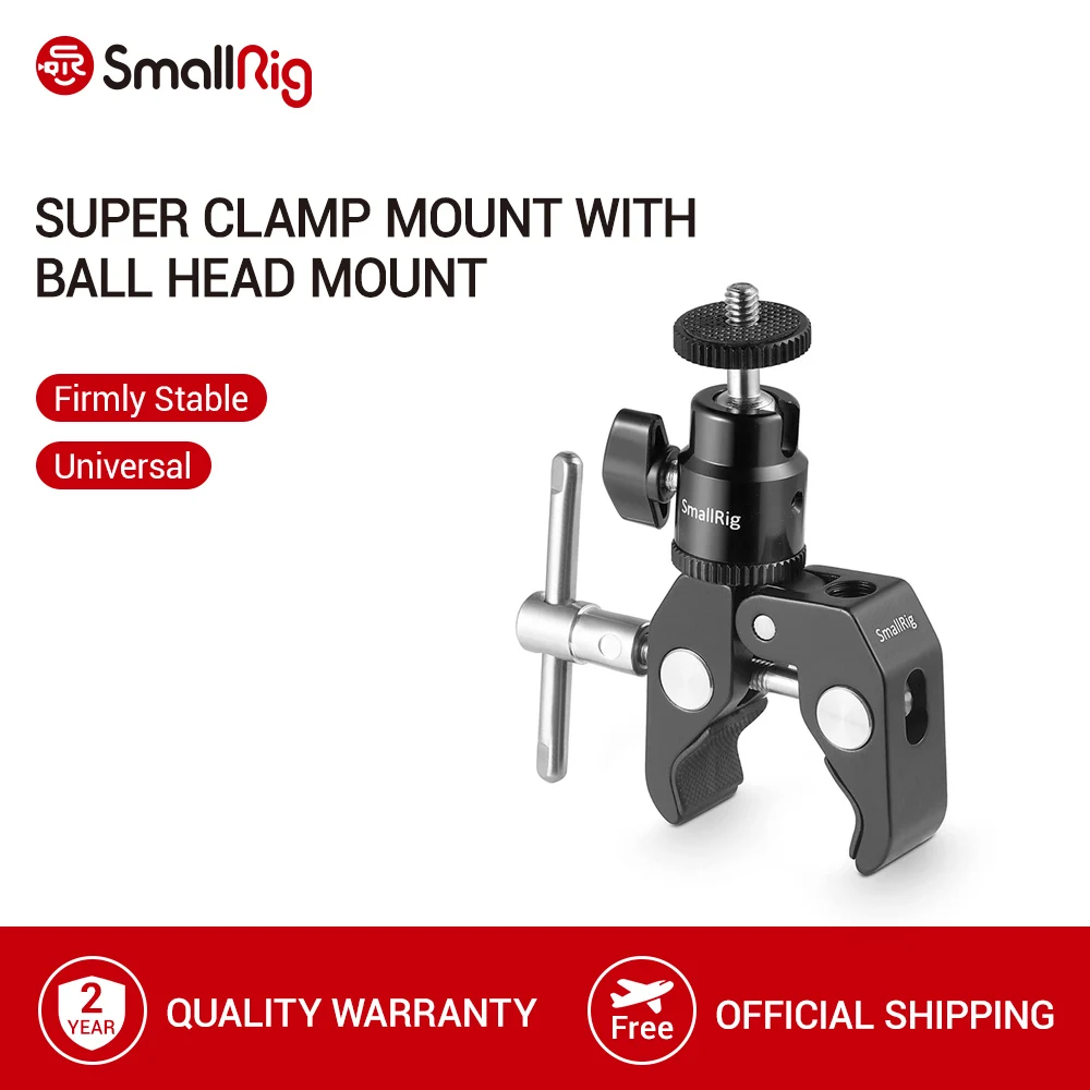 SmallRig Clamp Mount with 1/4" Screw Ball Head Mount Hot Shoe Adapter and Cool Clamp - 1124