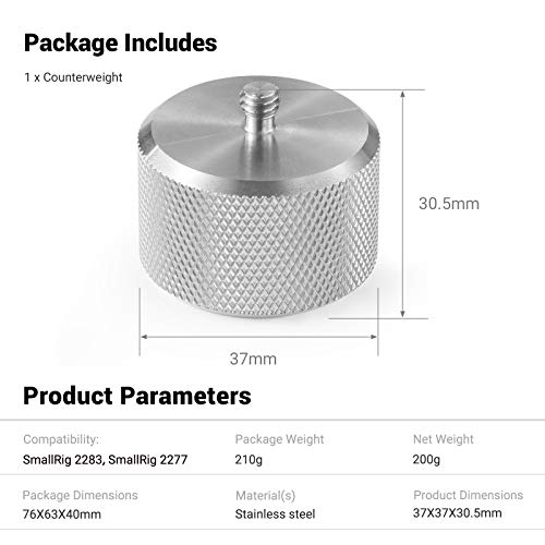 【PESO OPZIONALE】Questo SMALLRIG contrappeso 2285 è 200 g. Se avete bisogno di uno più leggero, date un'occhiata al contrappeso SMALLRIG 100g 2284 (B07PD22BRL), 50g 2459 (B07YWNB3HS).