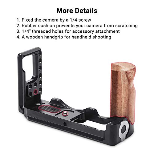 【Per Canon M50】La SMALLRIG L-Bracket L Staffa L Plate LCC2387 è una staffa adattabile per Canon M50. Fornisce più fori di montaggio per il fissaggio degli accessori. Inoltre, presenta un'impugnatura in legno sul lato destro, che rende più comodo tenere la fotocamera.