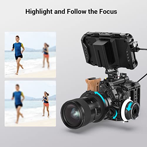 【Design Ergonomico】Il follow focus è dotato di manopola di messa a fuoco anti-sudore e antiscivolo (che imita il mozzo di un'auto sportiva), fornendo un controllo di smorzamento confortevole e preciso.
