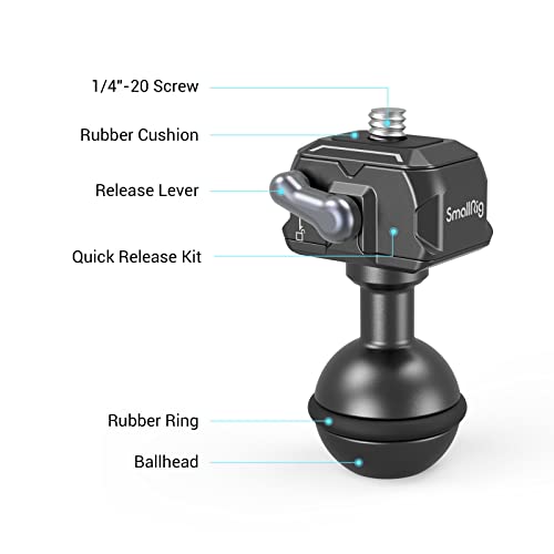 【Design a Sgancio Rapido e Ultra rapido】 SMALLRIG Mini testa a sfera a sgancio rapido 3600 è dotato di un supporto a sgancio rapido, un'estremità si attacca al braccio magico e l'altra estremità del kit di sgancio rapido può adattarsi a dispositivi con 1/4 "-20 Il kit di sgancio rapido consente di sganciare e configurare tra fotocamere, smartphone e monitor in un secondo invece di avvitare, risparmiando notevolmente tempo.