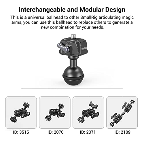 【Design Intercambiabile】Questa testa a sfera è intercambiabile con le teste a sfera su entrambe le estremità di SMALLRIG Magic Arm 2070/2071/2072, puoi scegliere di ottenere gli accessori sopra in base alle tue esigenze