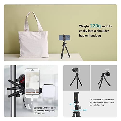 【 Con scarpa fredda】 - Sulla parte superiore si trova anche una scarpa fredda per il fissaggio di microfono, luce LED, ecc. Rimuovere il supporto per smartphone per montare action camere, fotocamere digitali e fotocamere mirrorless leggere fino a 1,5 kg.