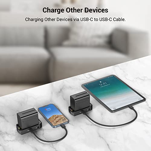 Carica più Dispositivi: Quando ci sono più dispositivi che devono essere alimentati contemporaneamente, come il corpo della fotocamera, il monitor, seguire la messa a fuoco, la trasmissione delle immagini, ecc., questa piastra adattatore per batteria NP-F può caricare 2-3 dispositivi a allo stesso tempo, allungando il tempo di ripresa.