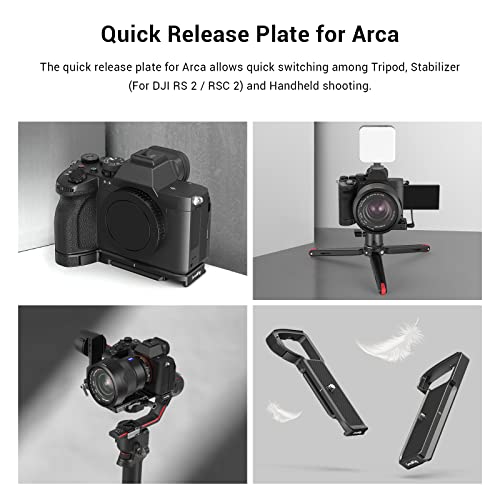 [Design a Sgancio Rapido per Arca Standard] La piastra di base per Arca standard consente il passaggio rapido tra treppiede, stabilizzatore (per RS 2 / RSC 2 / RS 3 / RS 3 Pro) e riprese a mano libera.