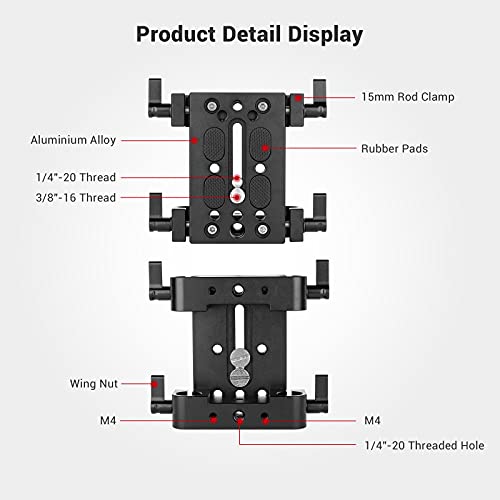 SMALLRIG Piastra di Base con Morsetti per Asta da 15MM Piastra di Montaggio per Treppiede per Videocamera DSLR -1775