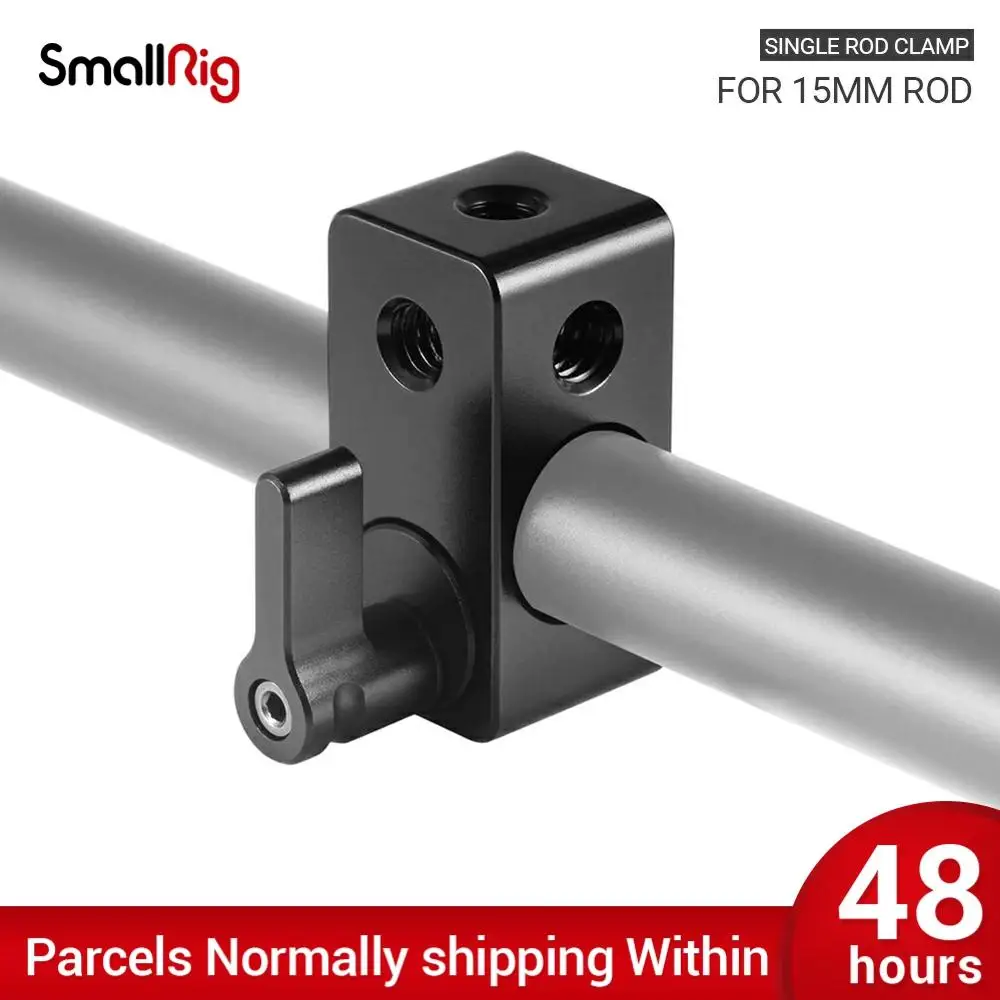 SmallRig Single Rod Clamp 15mm Rail Connector Adapter w/ Four 1/4"-20 Threads for 15mm Dslr Rig, Wingnut Black - 843
