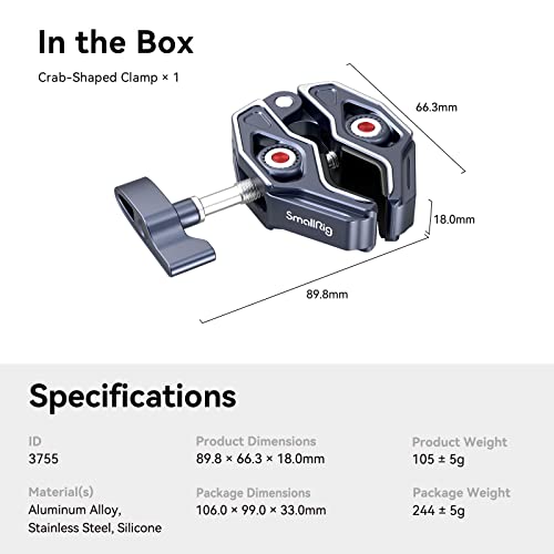 SMALLRIG Super Clamp con 1/4"-20, 3/8"-16 Fori Filettati, Carico Utile 7,7 Libbre/3,5 kg, per la Maggior Parte Degli Accessori Fotografici - 3755