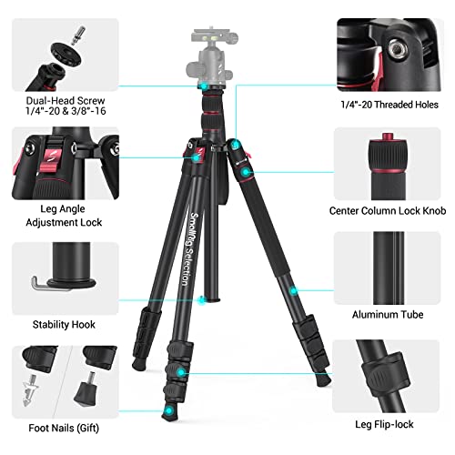 SMALLRIG Treppiede da 68"/170 cm, Treppiede Pieghevole in Alluminio, Compatibile con Testine Video da 1/4"-20 e 3/8"-16, Carico Utile 33 Libbre/15 kg, Altezza Regolabile da 16,1" a 66,9" - 3983