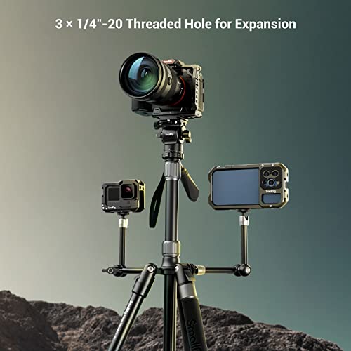 【INNOVAZIONE】Diverso dagli altri treppiedi, questo treppiede ha tre fori filettati da 1/4" aggiunti alla staffa, che possono soddisfare le esigenze di bracci magici esterni, telefoni cellulari, monitor, ecc.