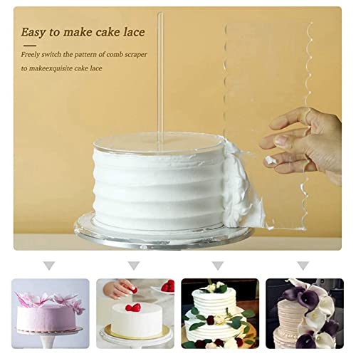 Smallterm Set di Dischi per Torta Tondi nel Acrilico - Dischi per Torta Tavole Circolari con Foro Centrale - 2 Raschietti Un Pettine (4 Modelli) e di Centraggio