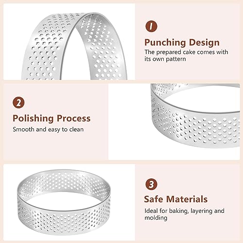 Smallterm 10 Pezzi Anelli per Crostate Circolari con Fori nel Acciaio Torta di Frutta Quiche Torta Mousse Stampo Stampo da Forno 7 Cm