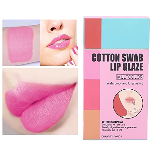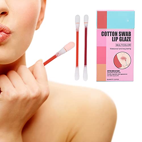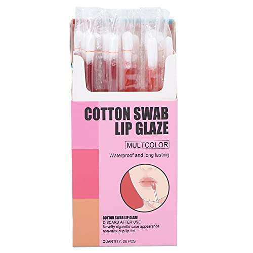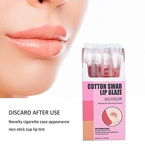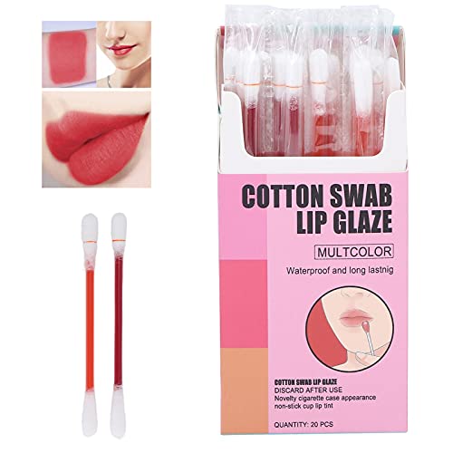 Set di Smalti per Labbra con Tampone di Cotone, 20 Pezzi Tinta per Labbra da Donna con Tampone di Cotone per un Tiro Singolo