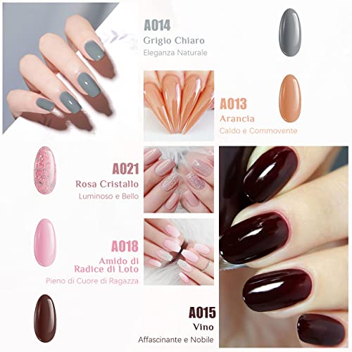 【Naturale e sicuro】: questo set di smalti per unghie a 10 colori è composto da 8 ingredienti non tossici ed è quindi sicuro e inodore. I componenti in resina naturale assicurano un'ottima copertura, una finitura altamente pigmentata e liscia e non danneggiano la pelle o le unghie. Adatto a donne attente alla salute.