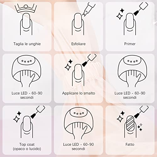 【Facile da usare】 Se usato correttamente, ha una lucentezza perfetta sotto la luce naturale. Puoi mescolare qualsiasi decorazione su una base leggera. Il gel per unghie con lampada UV ha un effetto a lunga durata di oltre 21 giorni.