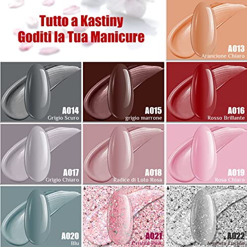 Smalto Semipermanente, Kastiny 13 PCS Kit Unghie Lampada 72W UV/LED con Base Top Coat, Kit Manicure Rosa Glitterato Marrone