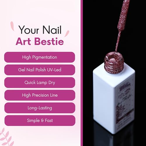 Smalto Semipermanente Liner Nail Art Gel per Unghie UV/LED 10 ml - Rosa Glitter - Smalto Nail Art Gel Semipermanente con pennello Alta Precisione per Linee, Colori e Decorazione Unghie Professionale.
