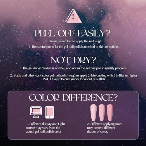 Liscio e facile da applicare. Il materiale in gel premium ha un bell'effetto lucido cremoso e resistente al colore senza scheggiature o bucce. Lo smalto gel per unghie è più liscio dello smalto gel tradizionale. Media per lampada per unghie a LED 30-60 secondi. Facile da applicare e rimuovere.