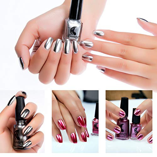 Smalto per unghie metallizzato, effetto specchio, 6 ml, asciugatura rapida, per donna, colore: argento