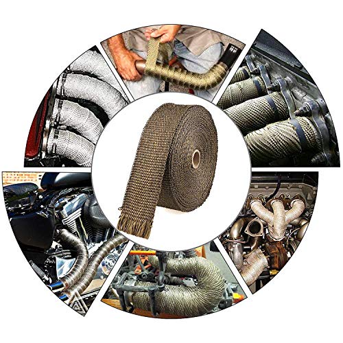 Smarcy Nastro Termico Isolante in fibra di vetro per tubi di scarico per motocicli 15M x 5CM, 15 pezzi Flange, isolamento per avvolgimento Collettore di scarico moto, Colore Oro antico