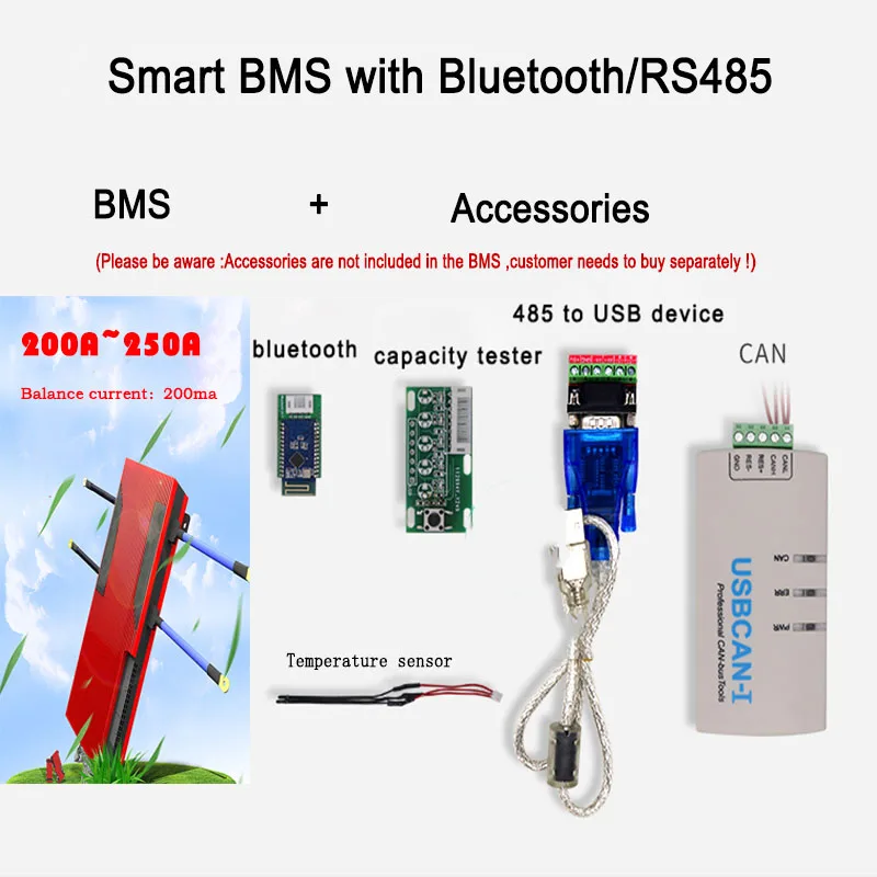 Smart BMS 200A250A+Bluetooth+RS485 +CANBus+UART used for Li-ion/ LiFePo4 /LTO batteries connected in 5-32series for EV E-bike