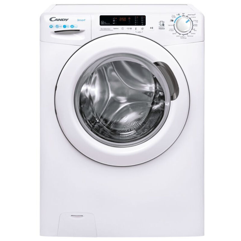 Lavatrice a carica frontale Smart Libera installazione 9 kg 1200 Giri/Min. Classe B Bianco 16 programmi Smart Candy CS1292DW4-11 CS1292DW4-11 - Lavatrice a carica frontale Smart Libera installazione, 9 kg, 1200 RPM, Classe B, Bianco, 16 programmi, Contenuti extra e controllo di prossimità (NFC), L x P x A (cm) 60x52x85 Caratteristiche Principali Tecnologia NFC Partenza ritardata Programmi rapidi Sensore Kilo detector Contenuti extra sull'App Cicli aggiuntivi Statistiche Funzione Smart check-up Semplifica il tuo bucato con il lavaggio guidato Il bucato più facile di sempre con la tecnologia Smart Touch Tecnologia NFC Cicli aggiuntivi Statistiche Funzione Smart check-up Classe B Tipo di caricamento Frontale Motore AC Partenza ritardata Sì (fino a 24 ore) Altezza del prodotto (cm) 85 Profondità del prodotto, inclusi porta e tubi (cm) 52 Larghezza del prodotto (cm) 60 Smart Sai il motivo per cui la gamma di lavatrici Candy Smart è stata realizzata? Lavare i tuoi indumenti facilmente e in