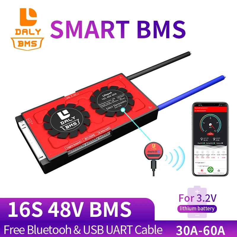 Smart BMS 16S 48V Free Bluetooth 18650 Battery pack Protection Board 3.2V LiFePO4 30A 40A 60A