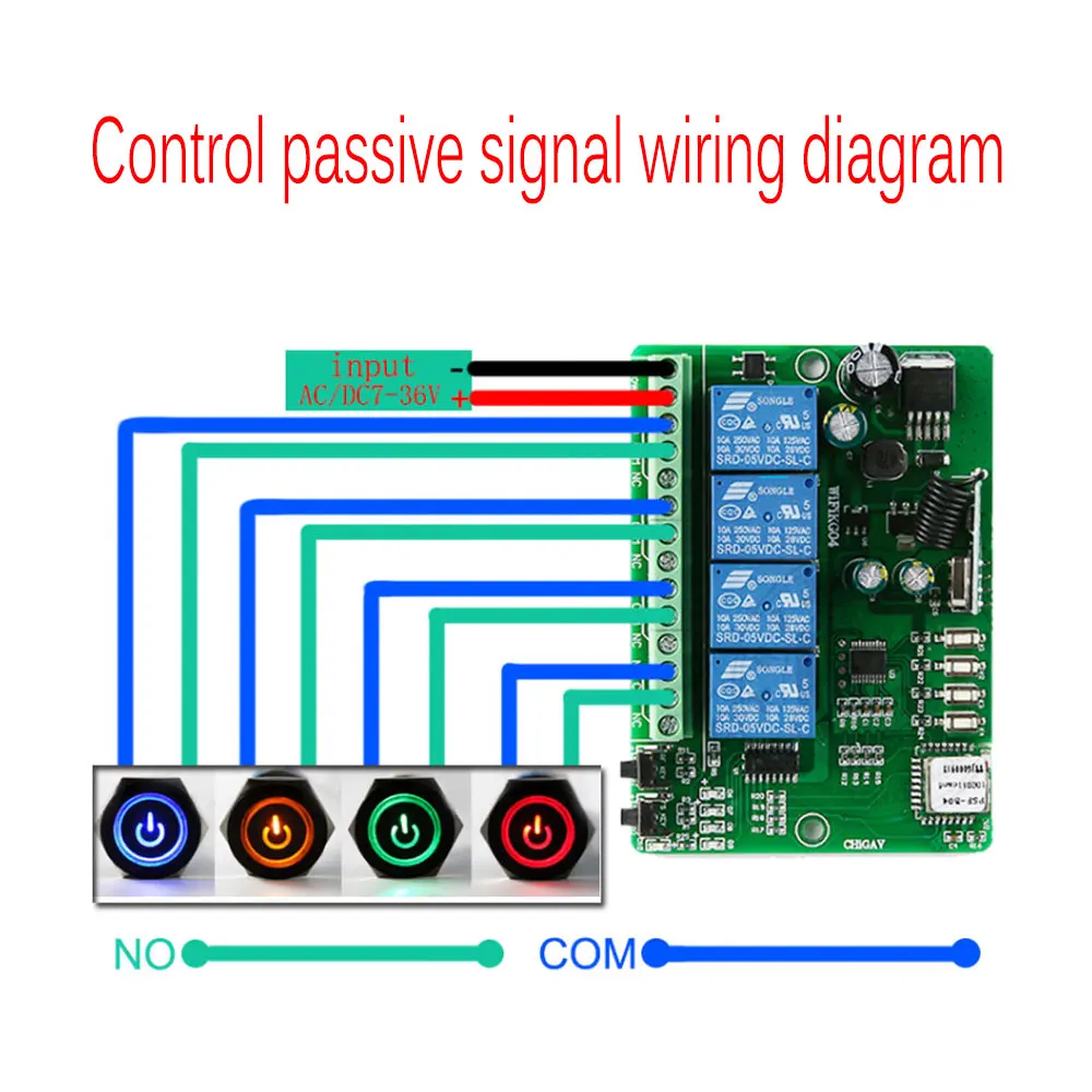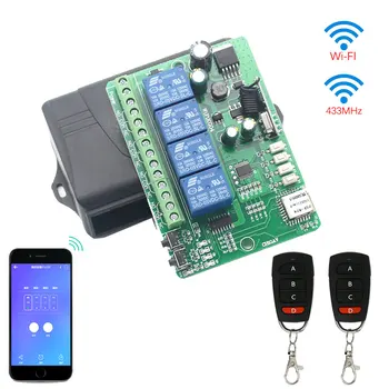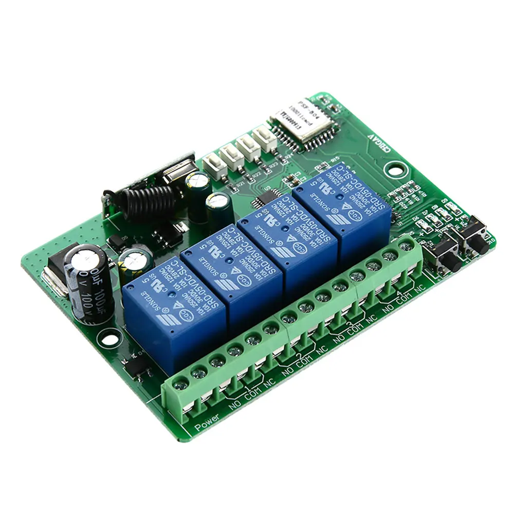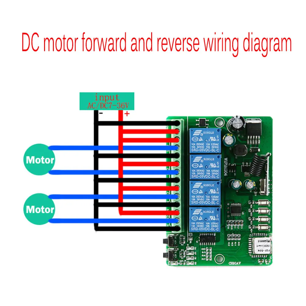 Smart home eWeLinK APP wireless remote control wifi switch, DC7-36V, 10A 4Gang for electric curtains, small fan