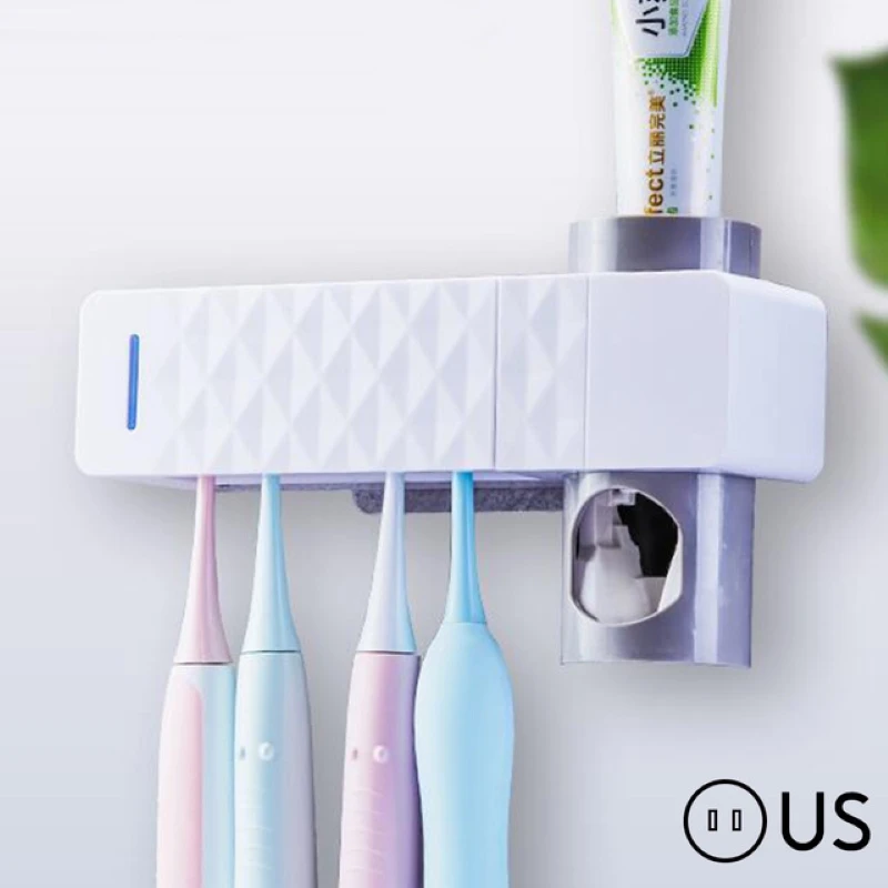Smart Induction UV Light Toothbrush Holder Sterilizer Box Toothbrush Cleaner Toothpaste Dispenser Wall Mount