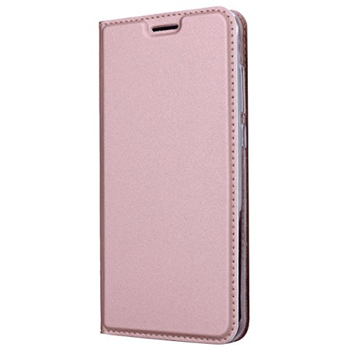 SMART LEGEND Cover Huawei P8 Lite 2017, Custodia in pelle per Huawei P8 Lite 2017 Oro Rosa Premium PU Pelle Flip Case Cover Protective Innere trasparente morbido silicone Bookcase Custodia Cover con carta di credito magnetica stand Funzione di alta qualità