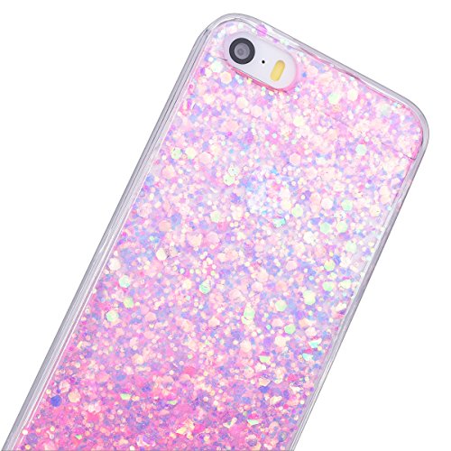 SMART LEGEND Cover iPhone 5/5S/SE, Gomma Morbido TPU Cover Bumper, Bling Glitter Quicksand Custodia, [Rendere il Vostro Telefono Sembra Lucido, Sorprendere il Vostro Amico] Plastica Trasparente Interno del Flusso di Sabbia, Soft Flessibile Protettiva Durevole Shock Assorbimento Caso, Fluente Liquido Star Cassa Protettiva - Rosa