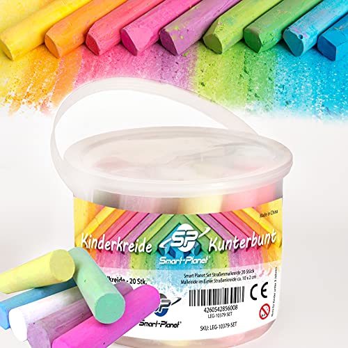 Smart Planet Set di gessetti per Strada 20 Pezzi di Gesso in Un Secchio di Gesso Stradale Circa 10 x 2 cm Gesso per Bambini per dipingere sulla Strada