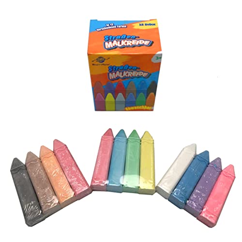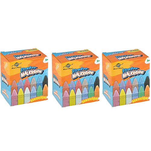 Smart Planet Gesso per pittura stradale, set da 36 gessetti da strada, ca. 10 x 2 x 2 cm, gesso colorato per bambini, per dipingere sulla strada, lavabile
