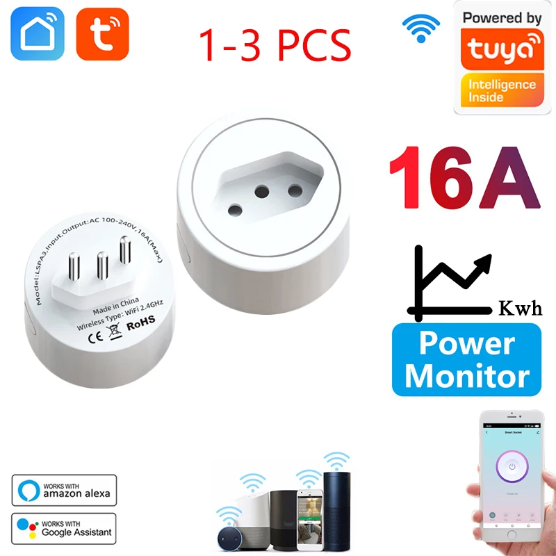 16A Smart Plug WiFi Brazil Smart Home Intelligent Outlet With Power Monitor Timing Voice Control Works With Google Home Alexa