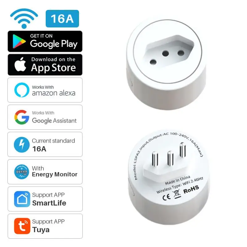 Smart Power Plug WiFi Brazil Intelligent Outlet;
