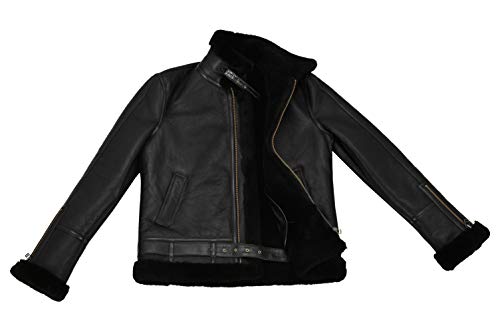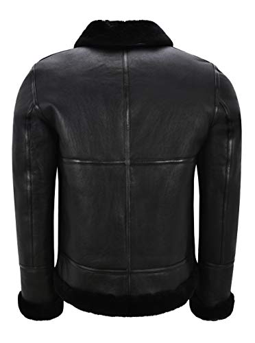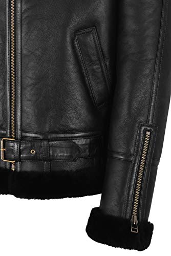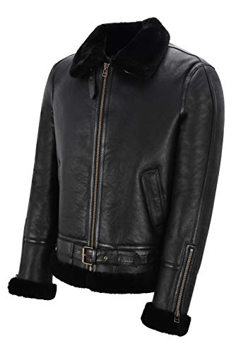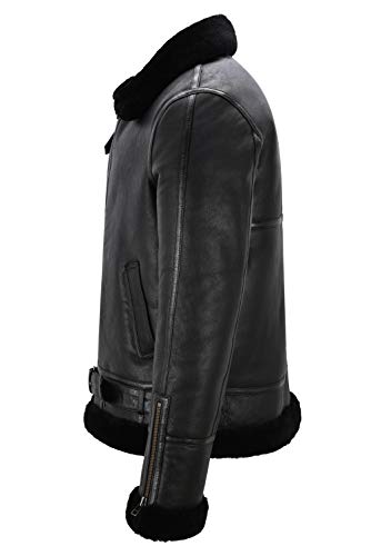 Smart Range Leather Giacca da uomo in montone B3 nera 100% vera pelle RAF WW2 Bomber invernale con cintura NV-47 (XL, Black/Black)