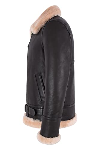 Smart Range Leather Giacca da uomo in montone B3 nera 100% vera pelle RAF WW2 Bomber invernale con cintura NV-47 (L, Brown/Beige)