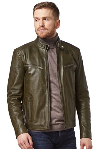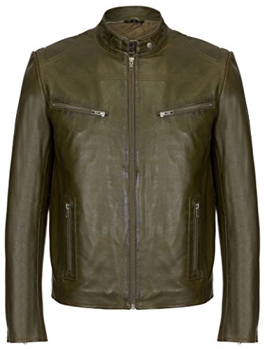 Smart Range SPEED Uomo in vera pelle OLIVE GREEN Jacket lavato Biker Motorcycle Style SR-02 (M)