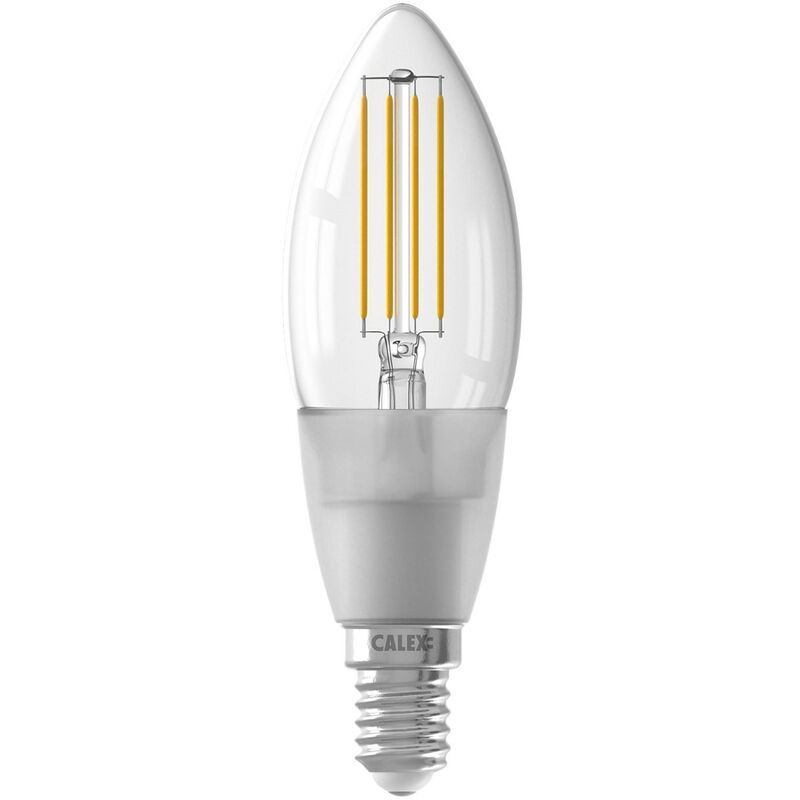 Vantaggi Lampadina LED a candela Calex Smart Tuya Wi-Fi + App di Calex Controllo vocale Regola l'intensità della luce Lampadina LED a candela Calex Smart Stai cercando una lampadina smart a LED con attacco E14 di alta qualità? Allora la lampadina LED Calex Smart Candela fa per te! Questa lampadina smart ha attacco a vite E14, che la rende facile da montare, pronta all'uso e compatibile con la maggior parte di lampade e lampadari. Inoltre la forma a candela dà a questa lampadina un tocco di originalità. Come se non bastasse, risparmierai notevolmente sui costi energetici, perché questa lampadina a LED consuma solo 4,5 Watt e ha 2 anni di garanzia. Tuya Wi-Fi + App di Calex Puoi installare facilmente la lampadina smart Candela LED tramite l'app ufficiale di Calex, che puoi scaricare gratuitamente. Calex utilizza la piattaforma Tuya, che si collega al Wi-Fi di casa. Usando l'app è possibile controllare più lampade contemporaneamente e assegnare a ciascuna lampadina il proprio nome, ad